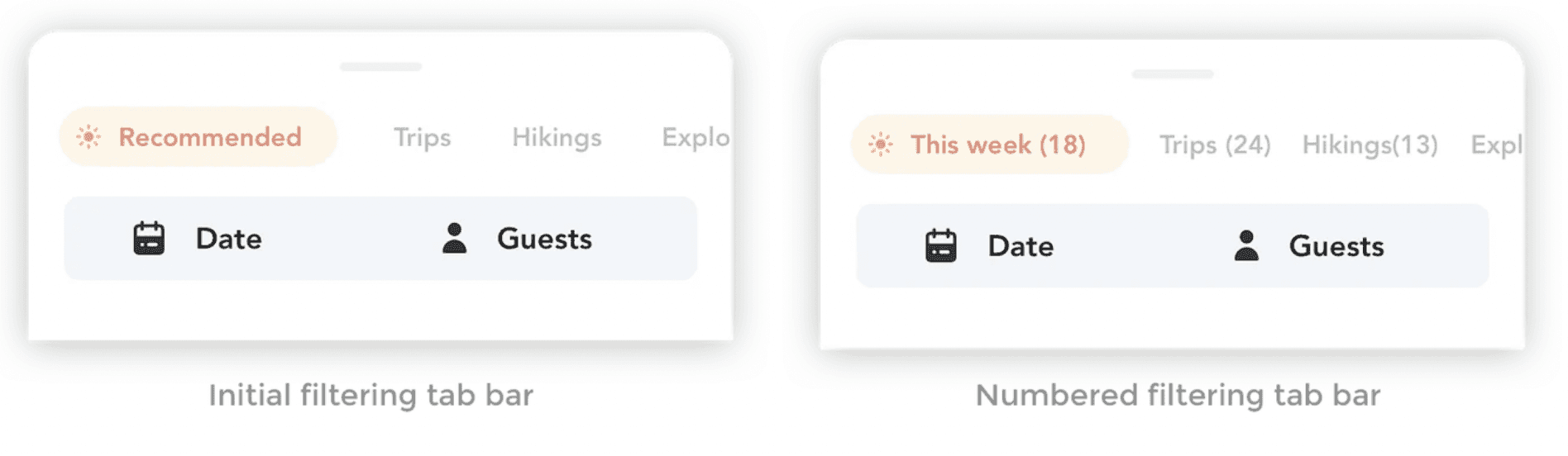 Adding better clues: Numbers were added into the titles of the filters so that it would be easy to see the number of available activities rather than a user having to click through all the tabs to see if there was something in there for them.