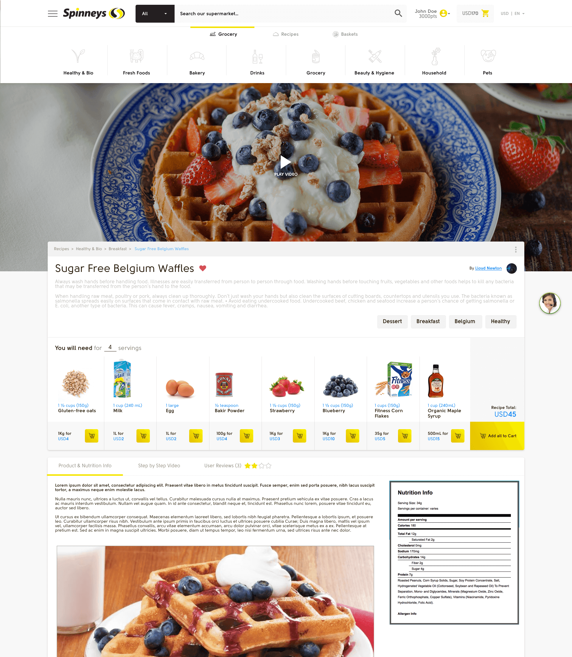 These pillars were put into action using several features along the customer’s pre-shopping, during shopping, and post-shopping journey like: Shared shopping lists, Recipes & Meals, Allergy alerts, product purchase reminders, anticipatory design, etc…