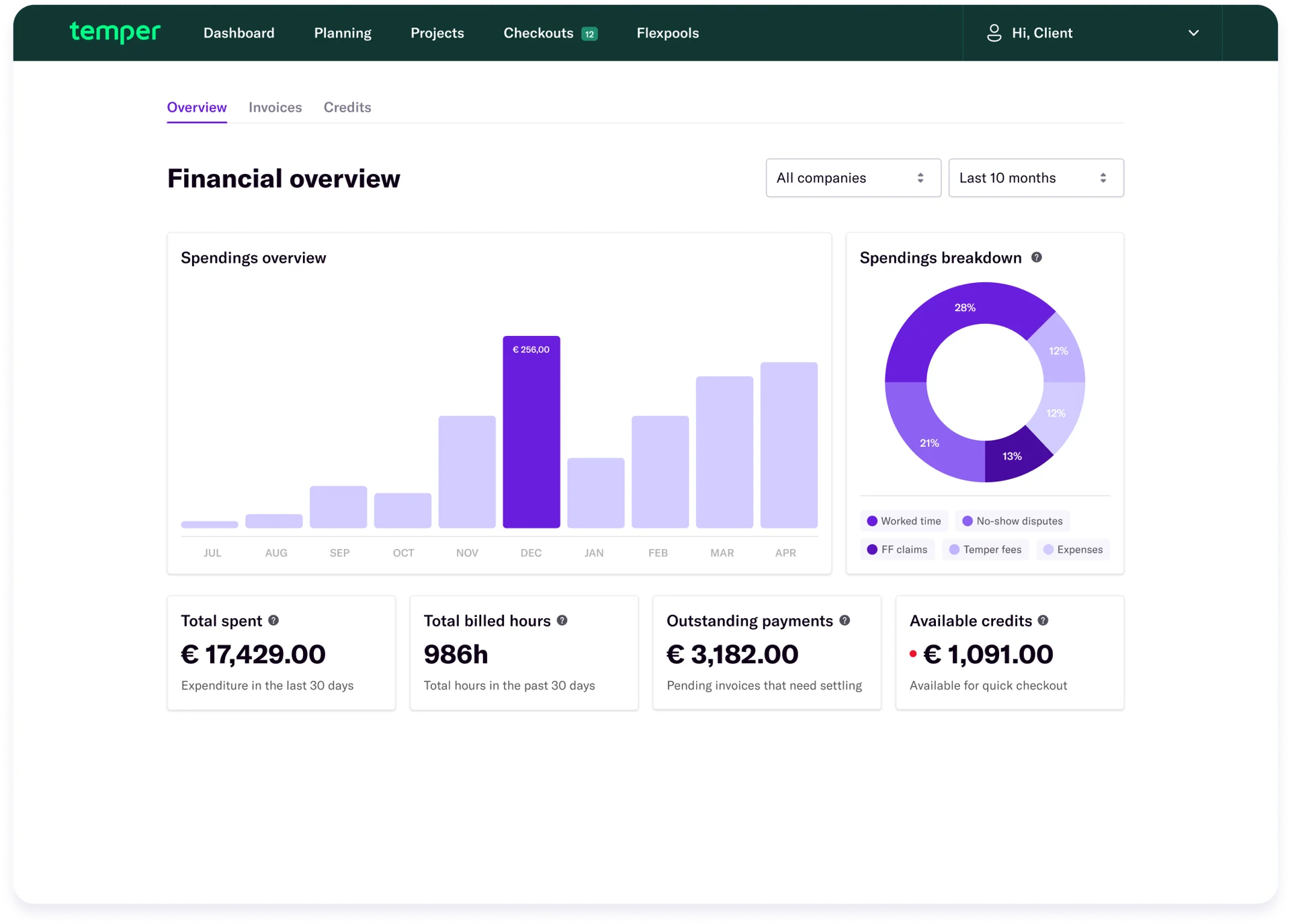 The Financial overview section was redesigned with efficiency, flexibility and education in mind. The revamp included access to more data, clearer overview of finance on Temper, as well as flexible use of Invoicing.