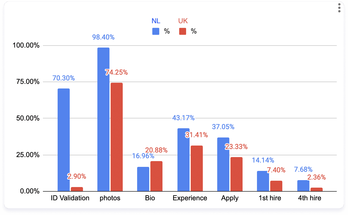 The first experiment was particularly well-received, reducing drop-off before ID validation to 17%, and 19% drop-off before first application.