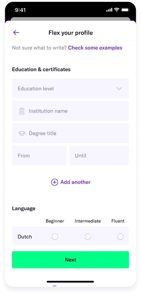 A Flex worker is not registered before making sure they have a valid id, vat-id, and many more details.