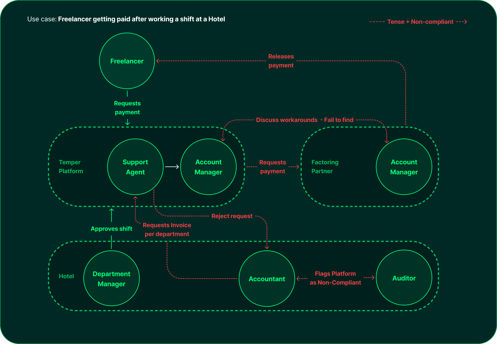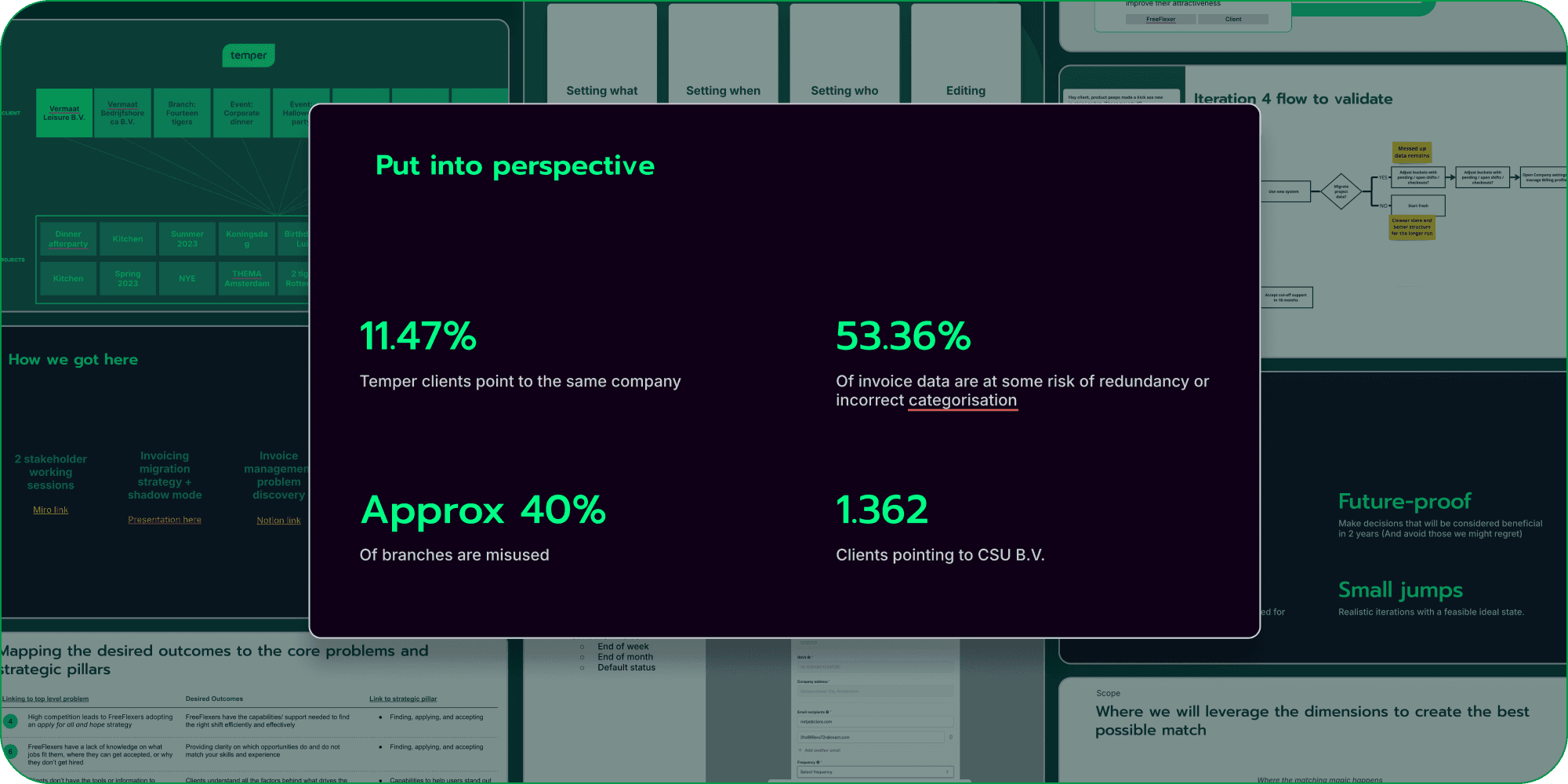Everyone used invoices differently, so I started by mapping and diagnosing the technical logic. Frontline work clients come from various verticals, each with a unique invoicing and payment preferences. For Temper to grow, we had to adapt.