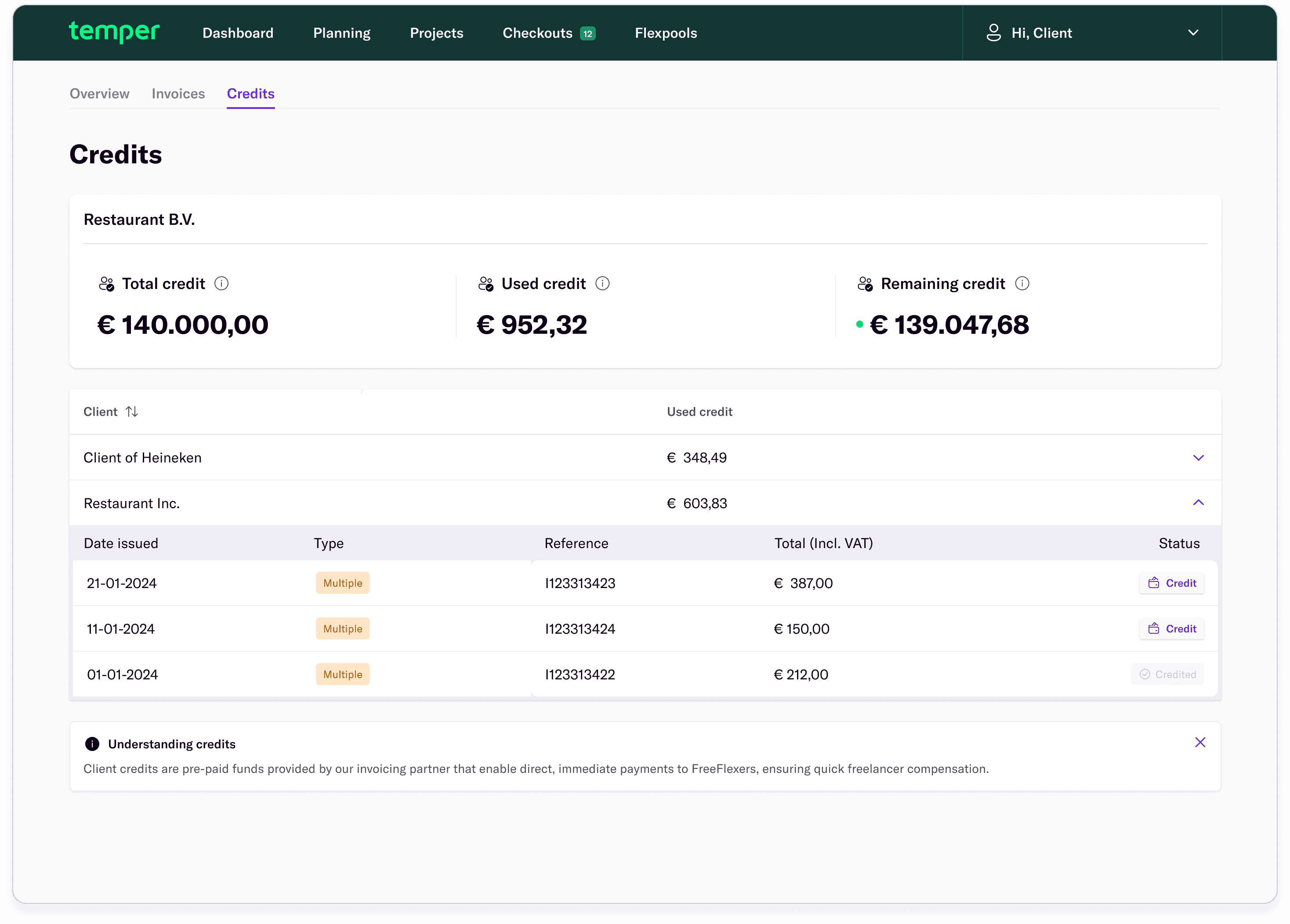 A redesigned overview focused on clarity and education, giving clients visibility into spend and behavior.Invoice Management